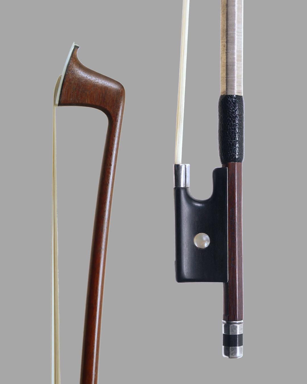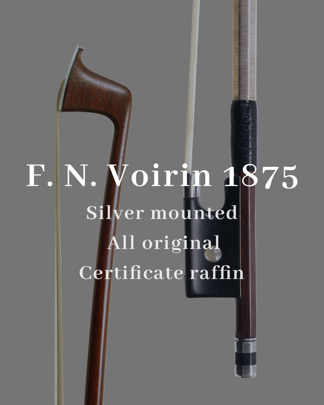 這把 F.N. Voirin 1875 是 19 世紀法國製弓黃金時代的頂級傑作,François Nicolas Voirin 被譽為「弓界史特拉底瓦里」,以極致的平衡感、細膩的反應與強大的抓弦力聞名。這把製作於 1875 年他創作巔峰期的銀裝(Silver Mounted)精品,完美展現了這位大師的精湛工藝,能瞬間提升演奏的層次感與色彩。