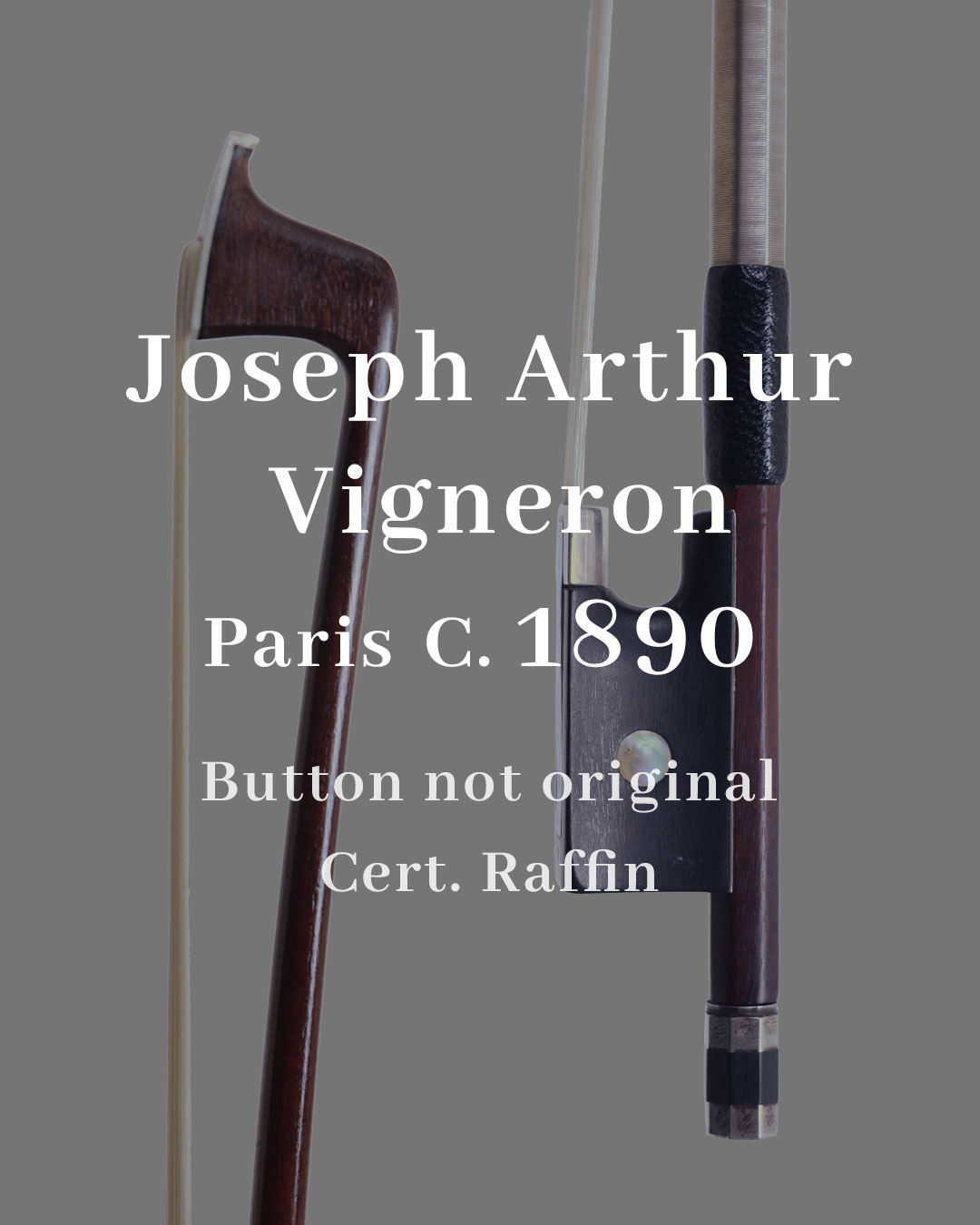 Joseph Arthur Vigneron (1851-1905) 是 19 世紀末巴黎最受推崇的大師之一,他是將 Mirecourt 傳統工藝帶入巴黎黃金時代的關鍵人物之一。他的弓以力量、飽滿度和絕佳的投射性聞名,能駕馭寬廣的動態範圍,雖然有時被認為缺乏精細的裝飾性,但其卓越的功能性、力量和手感,使其至今仍是專業音樂家和收藏家高度追捧的目標。